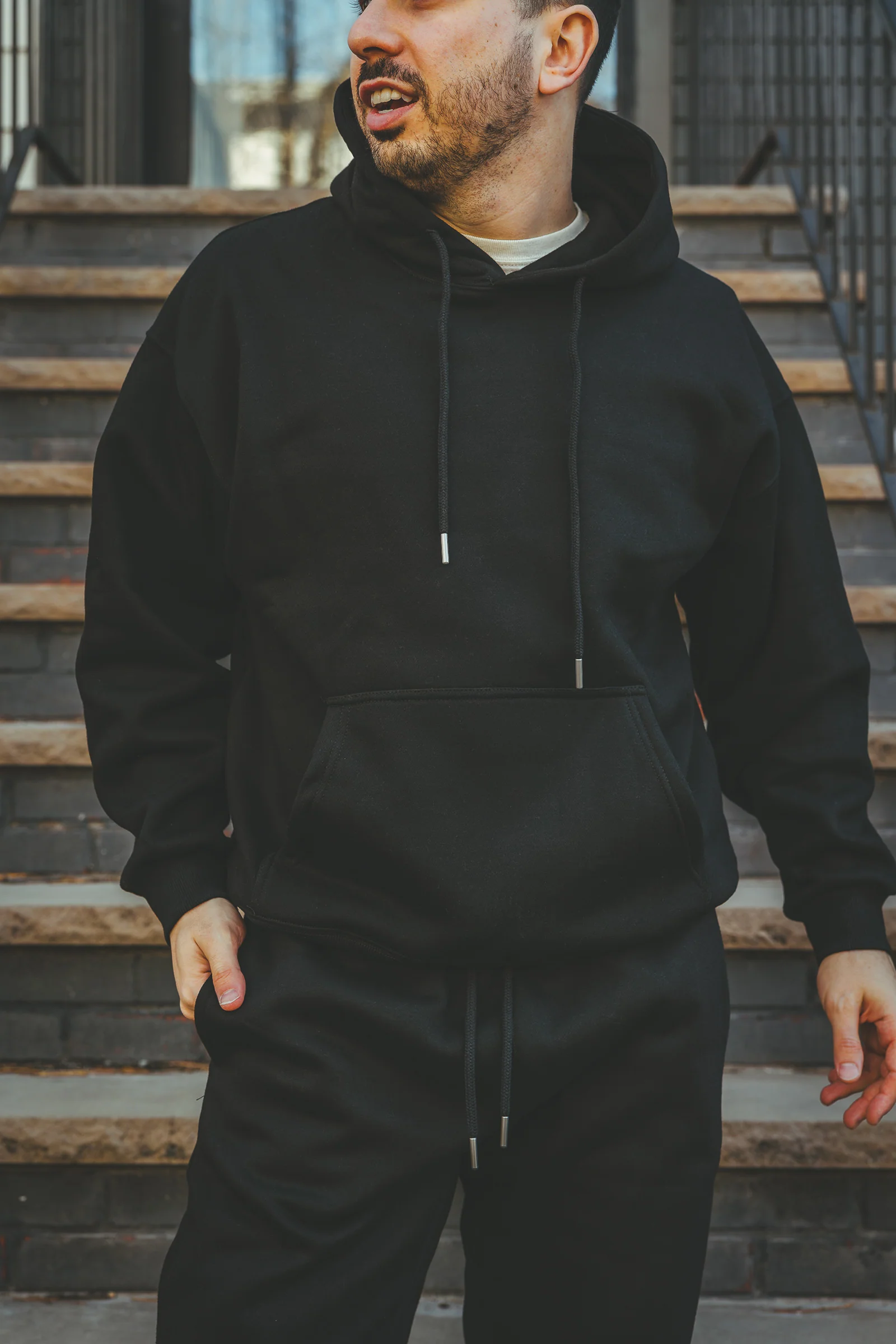 Our Core Sweatpants and Hoodies were designed to be the essential loungewear pieces you can’t wait to put on after work or on the weekends. They’re made from a super-soft fleece fabric that’s brushed on the inside for unmatched comfort so it feels like wearing a blanket. The premium cotton-poly blend offers the perfect balance of softness, warmth, and durability. This hoodie feature a relaxed fit for an effortless, laid-back vibe, with details like a cotton basket-weave drawstring with metal tips, a front kangaroo pocket, and ribbing at the cuffs and hem. The hoodie has easy fit, with drop-shoulder seams and extra room in the body for layering. Pair the Core Sweatpants and Hoodie together for the ultimate Sunday sweatsuit. As always, this item is cut with shorter proportions in the arms and body, made to fit shorter men perfectly.