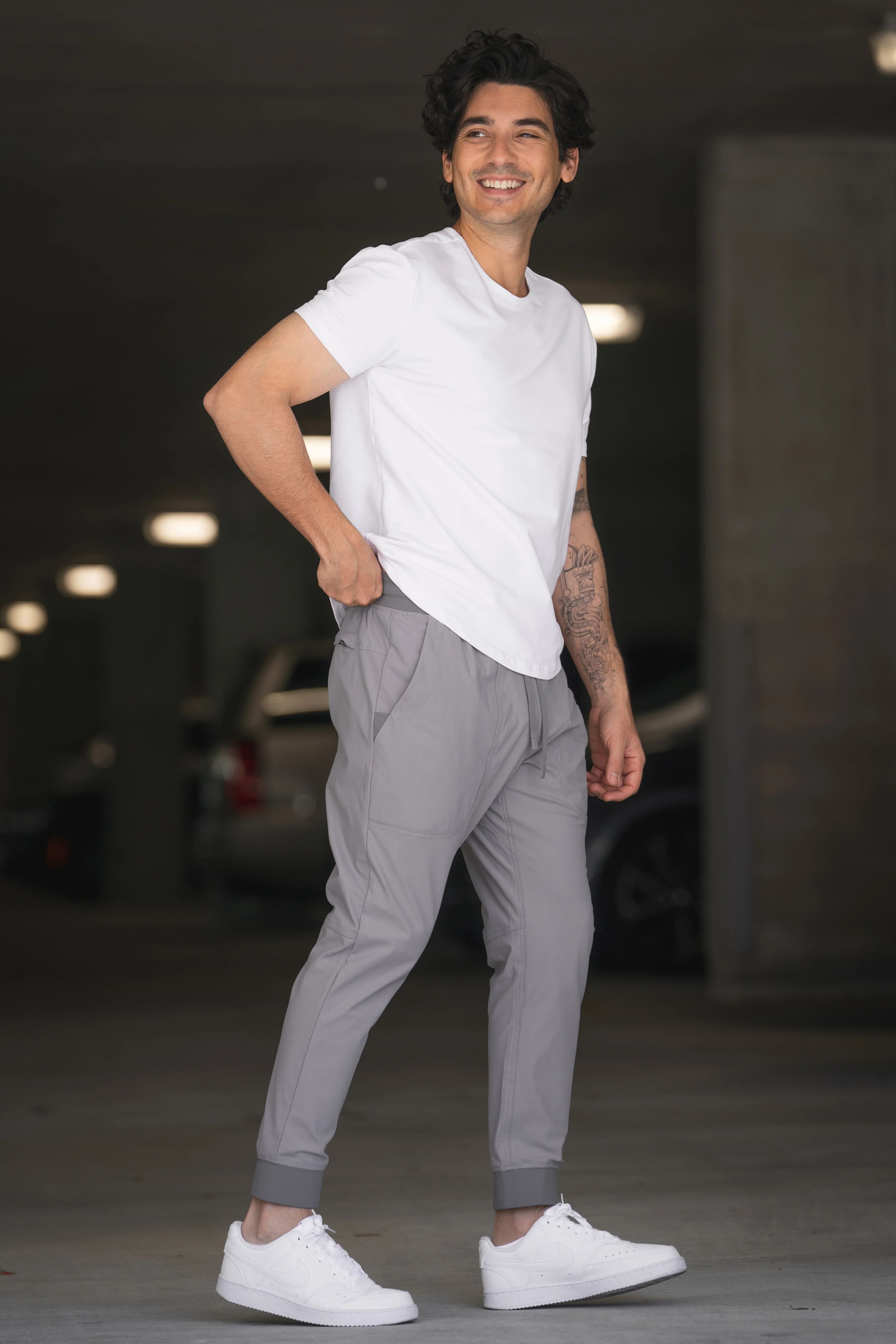 Versatility is key with these joggers, which effortlessly transition from casual to elevated looks. Functional features like slant pockets with a hidden zip pocket, a back zip pocket, and rubberized tips on the stretch waistband provide practical convenience without sacrificing style. Whether you're commuting to work, on the golf course, or heading out for a weekend brunch, these joggers are built to keep up with your lifestyle while delivering a refined, modern aesthetic. Available in 2 inseam lengths made to fit short men.